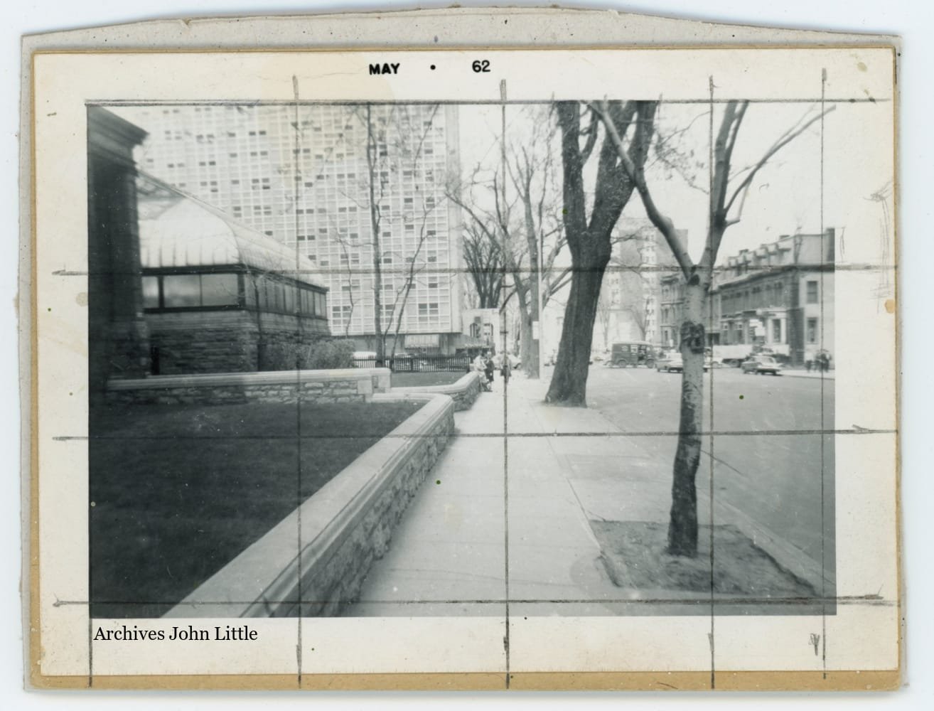 Around the 1980s, John Little photographed this row of houses along Rue Knox, facing the railroad tracks in Pointe St. Charles. Using a makeshift panorama technique, he pieced the images together to capture the length of the street.