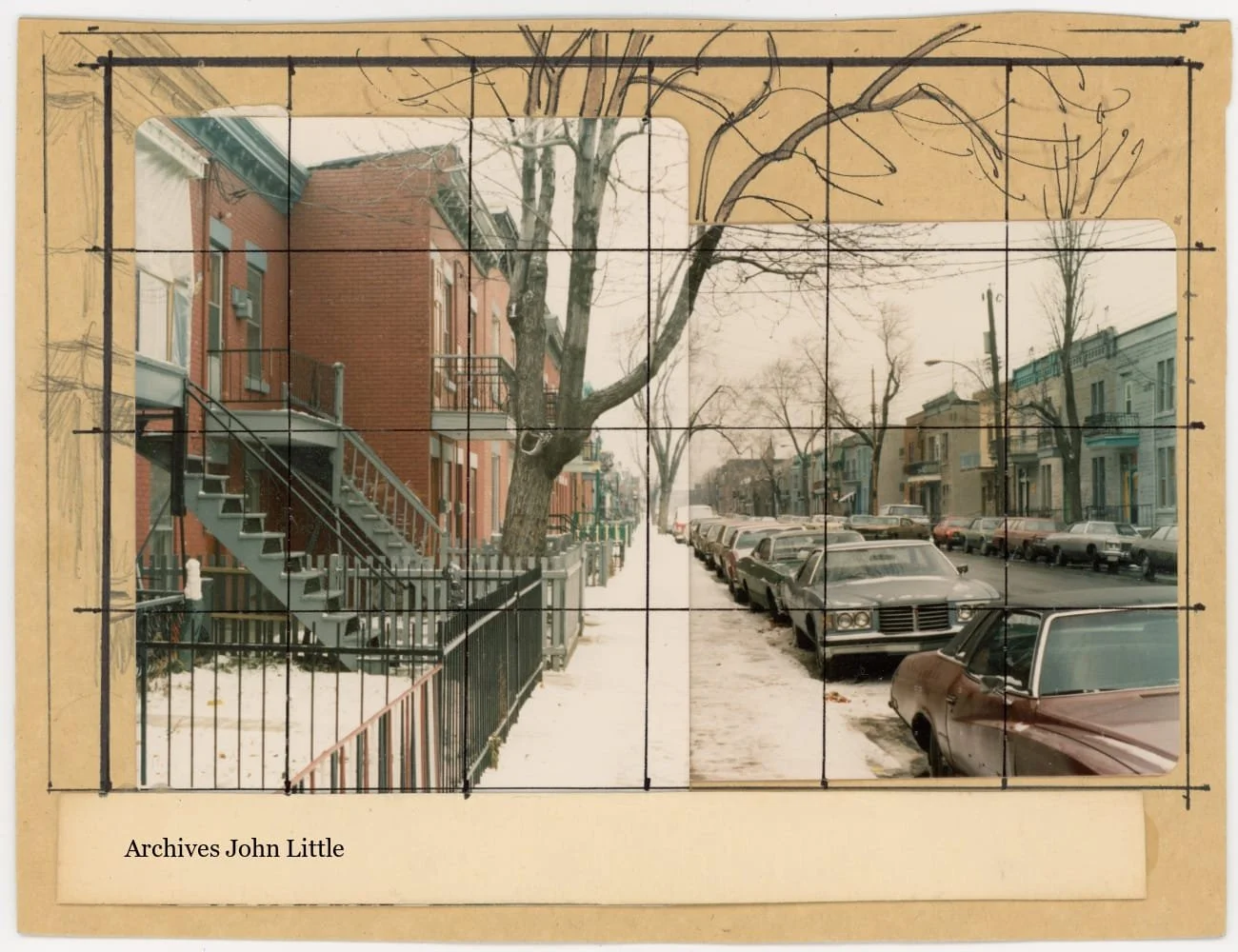 Expropriations and redevelopment often targeted lower-income neighbourhoods and less political influence than those of more affluent residents. The row houses on the right-hand side of this photo and painting below were demolished for the construction of Montreal's Ville-Marie Expressway.